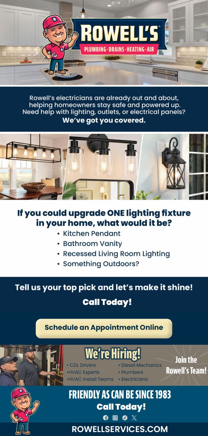 Rowell's electricians are already out and about, helping homeowners stay safe and powered up. Need help with lighting, outlets, or electrical panels? We've got you covered.