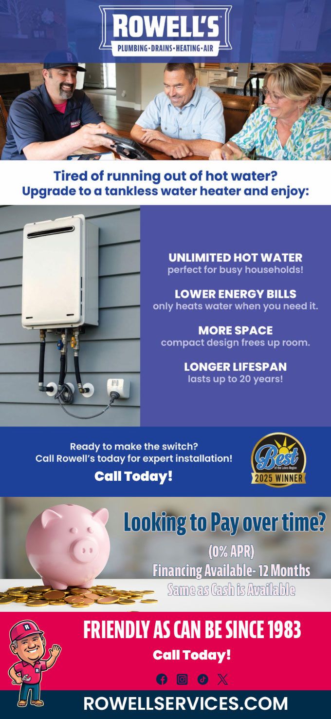 Tired of running out of hot water? Upgrade to a tankless water heater and enjoy: